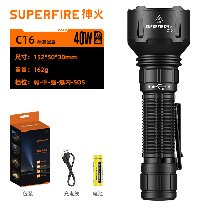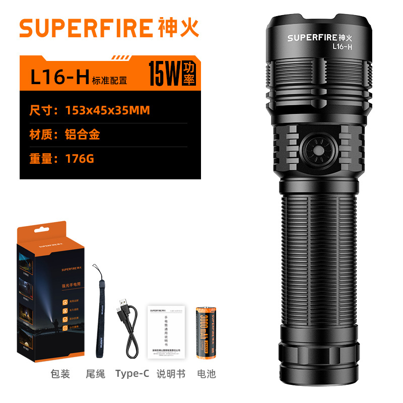 【神火】SUPERFIRE神火D18系列大容量高亮户外露营登山搜索救援强光手电筒