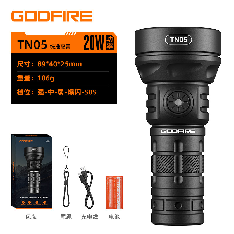 【神火】定制GODFIRE神火TN05系列防水手电户外led应急充电便携式防身