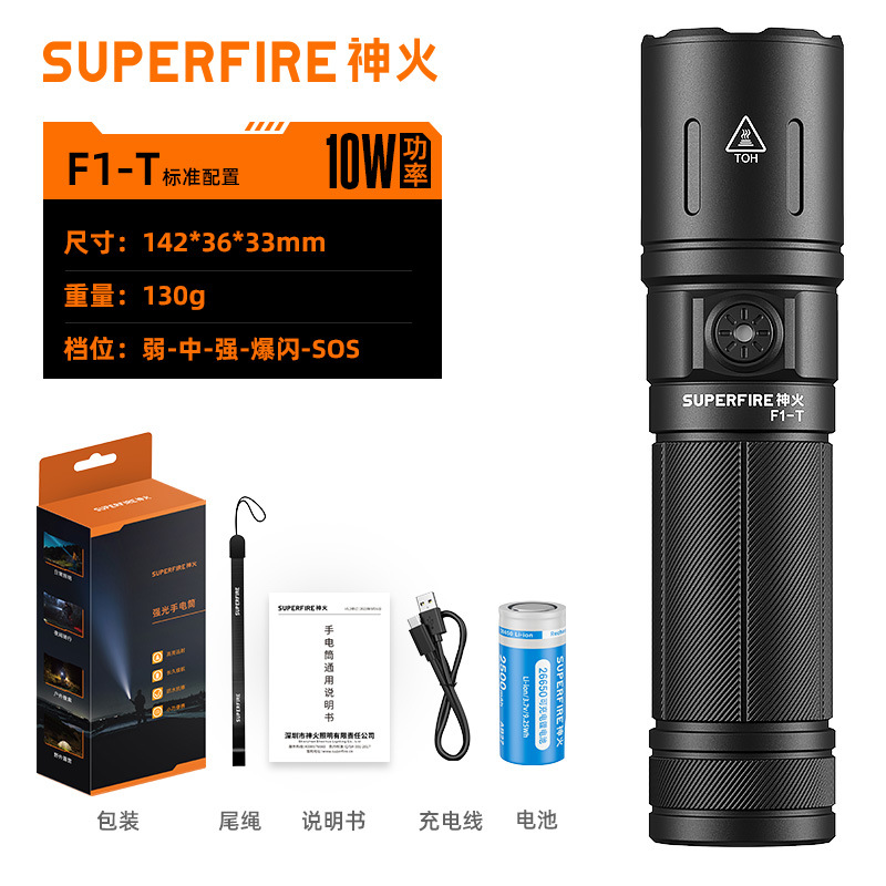 【神火】神火F1-T变焦强光手电充电户外应急照明防汛防水便携电筒厂家批发