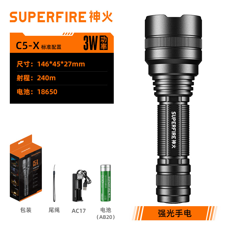 【神火】神火C5系列防水手电户外led应急便携式防身多功能强光充电手电筒