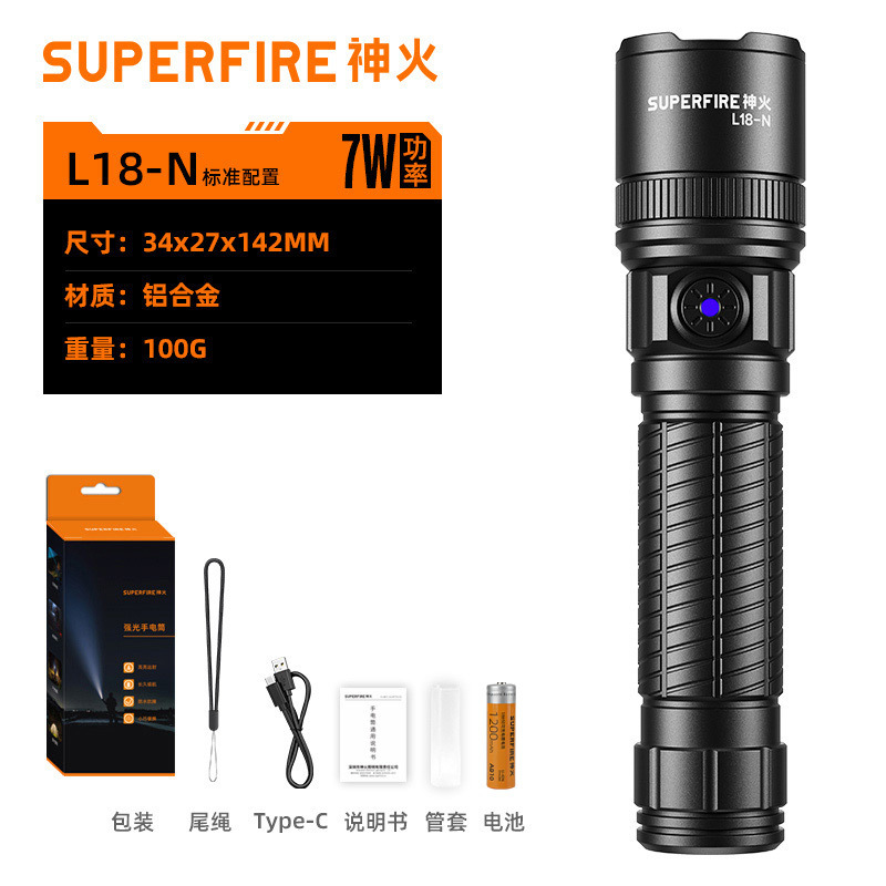【神火】定制神火L18-N防水手电强光超亮远射可充电家用户外LED便携手电筒