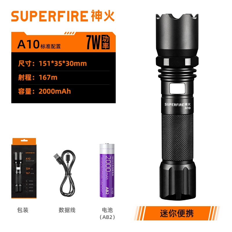 【神火】跨境热销神火A10迷你手电筒USB充电莲花头户外家用强光手电筒批发