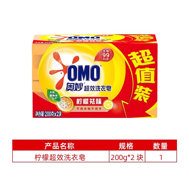 【奥妙】奥妙99超效洗衣皂肥皂去污去渍手洗大块透明皂超值装200g×2块