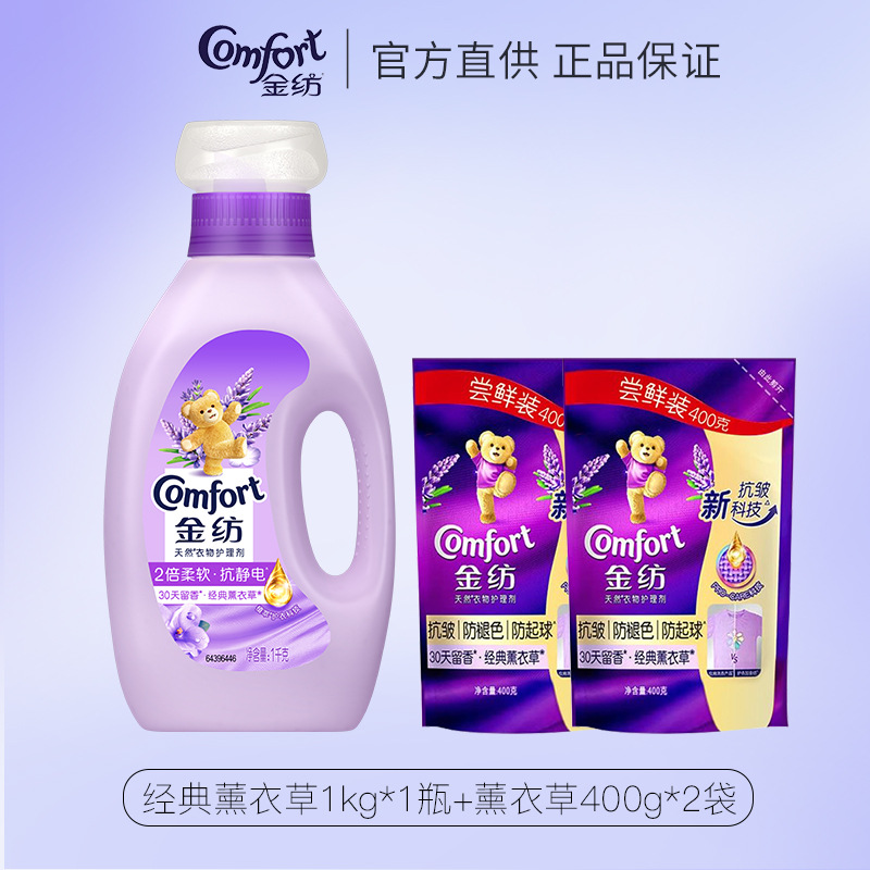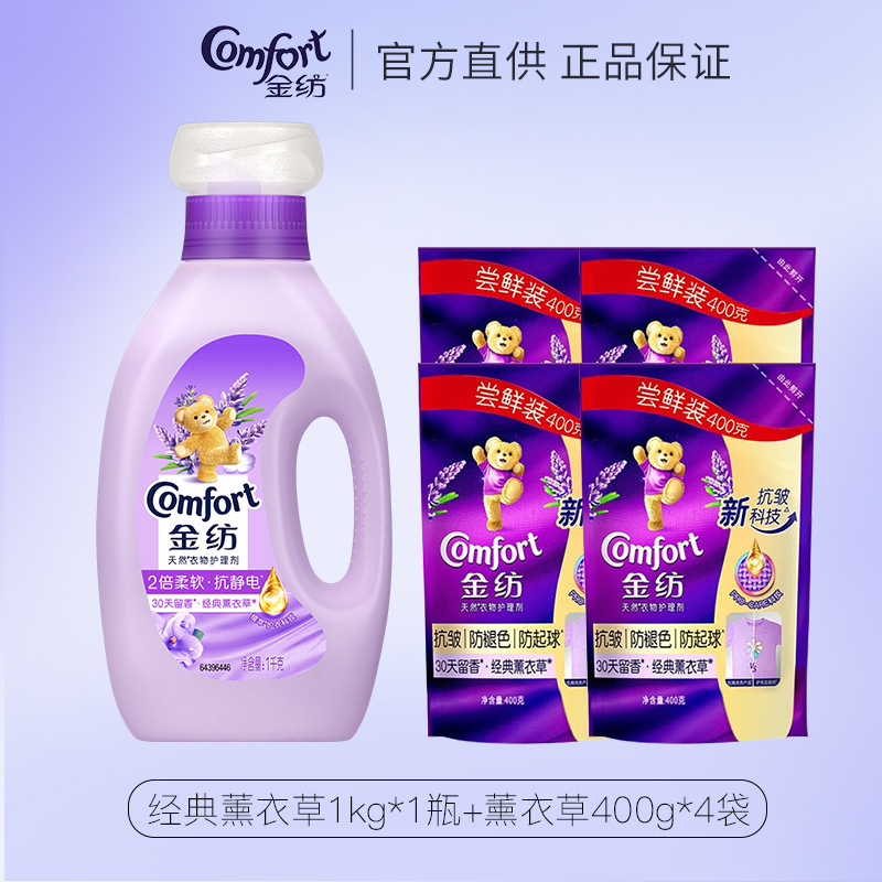 【金纺】金纺衣物柔顺剂防静电持久留香柔软护理剂薰衣草1L