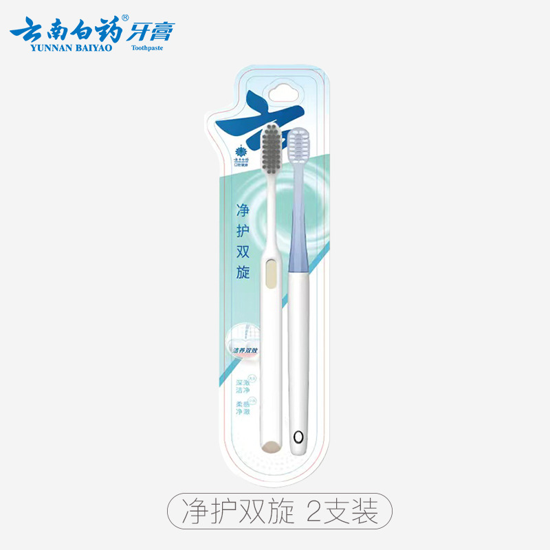 【云南白药】云南白药旋风系列双重刷丝净澈口腔柔感护龈成人软毛牙刷2支装批