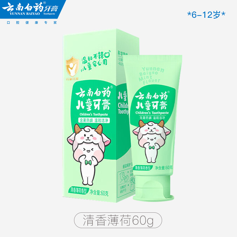【云南白药】云南白药儿童牙膏3到6岁无氟6到12岁含氟换牙期防蛀固齿果香薄荷