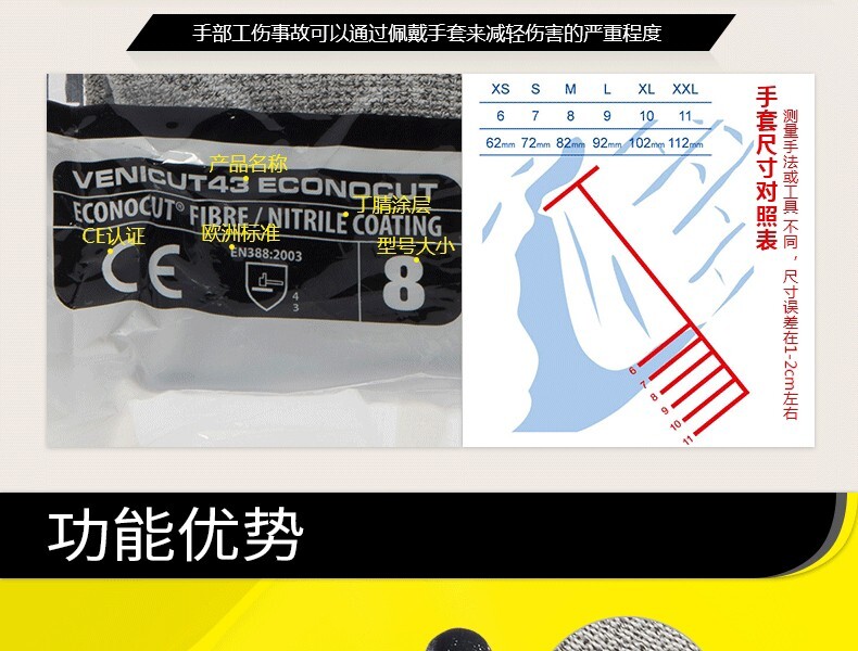 | 产品名称 | C级丁腈涂层13针防割手套三双装 |