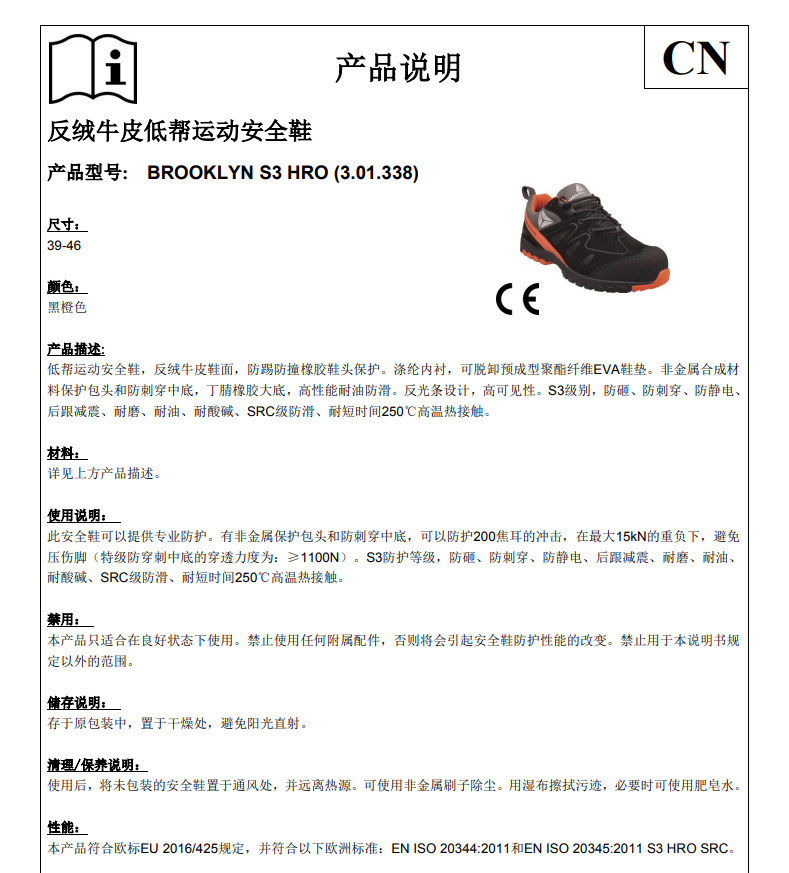 | 产品名称 | 运动系列无金属防高温S3安全鞋 |