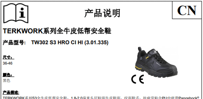 | 产品名称 | TW系列S3无金属安全鞋 |