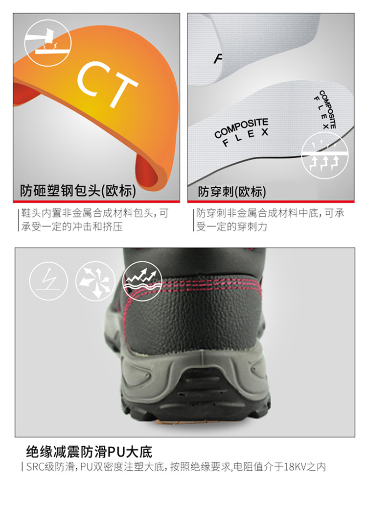 经典系列无金属高帮防砸防刺穿18KV绝缘鞋