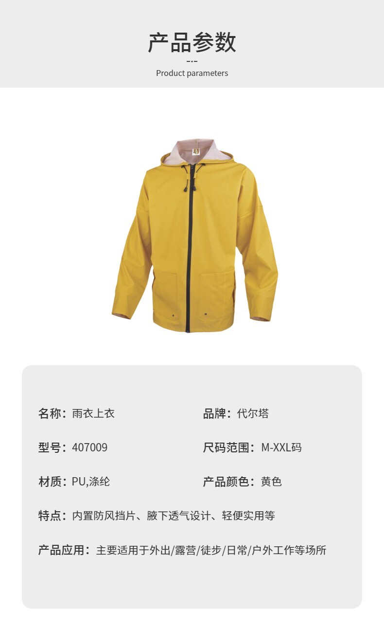 | 产品名称 | 透气厚实柔软雨衣上衣 |