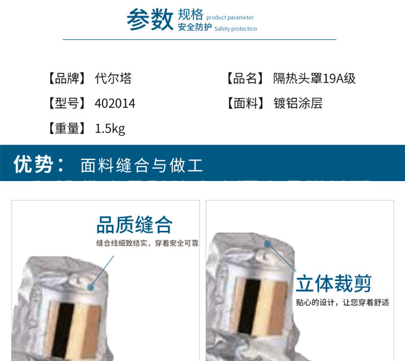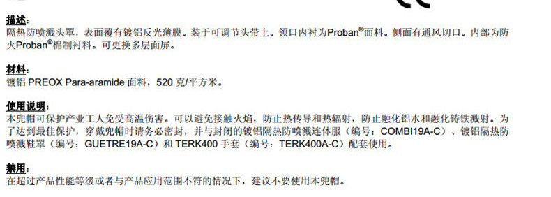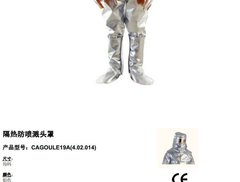 | 产品名称 | A级隔热防喷溅头罩 不含面屏 |