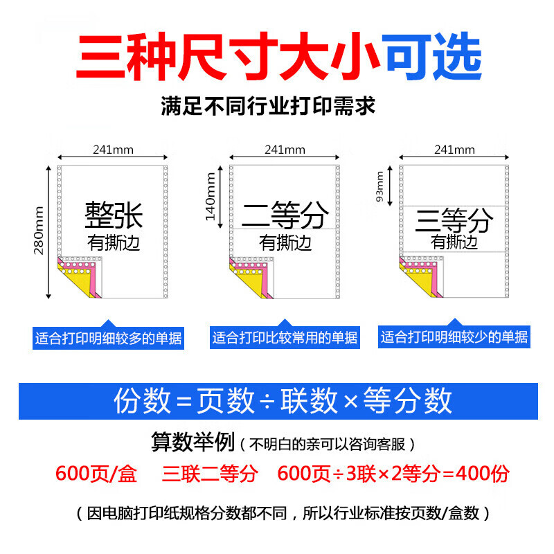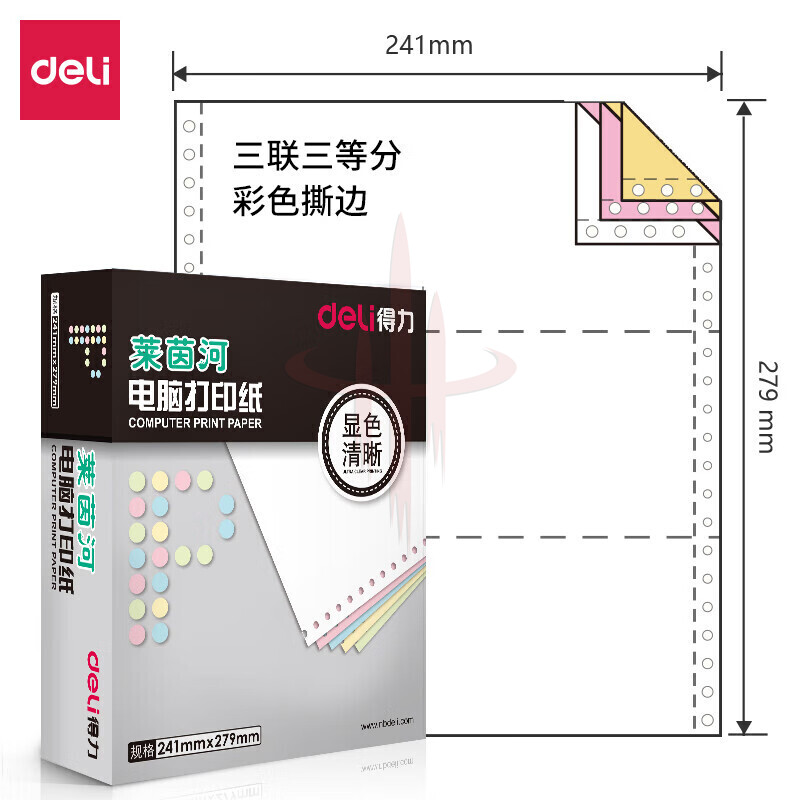 制造商型号:得力莱茵河L241-4电脑打印纸(1/3CS彩色撕边)(1000页/盒)