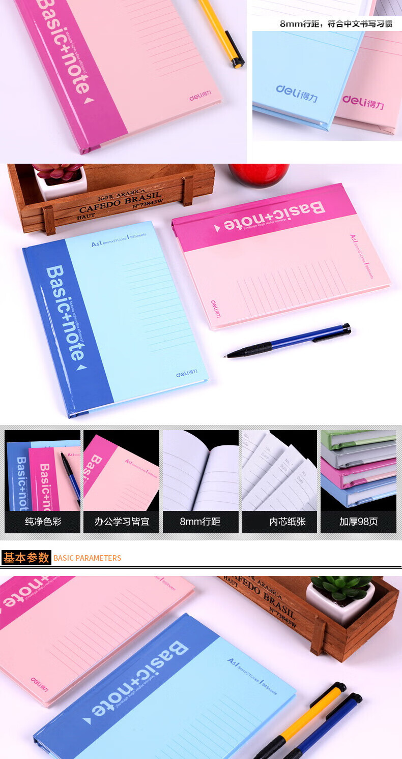 制造商型号:得力3281硬抄本(混)-96张-A4(本)