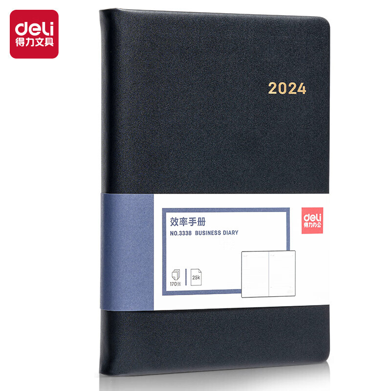 制造商型号:得力3338效率手册-170张-25K(黑)(本)
