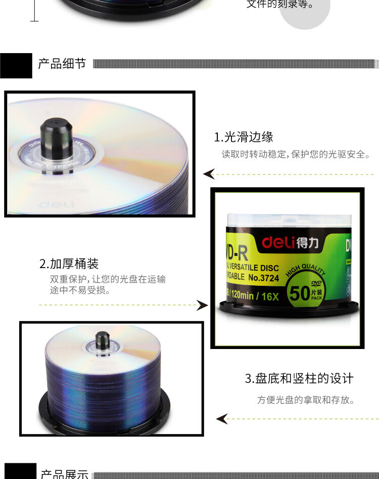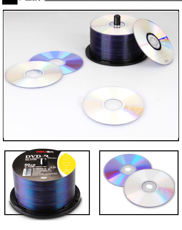 | 制造商型号 | 得力3724-DVD-R(雾银)(50片/筒) |