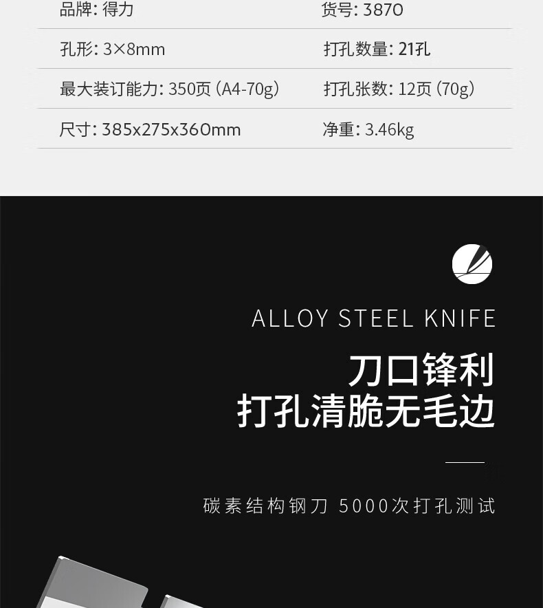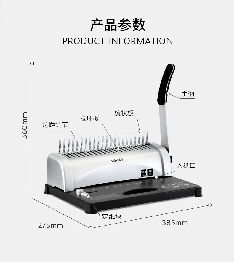 制造商型号:得力3871胶圈装订机(黑)(台)
