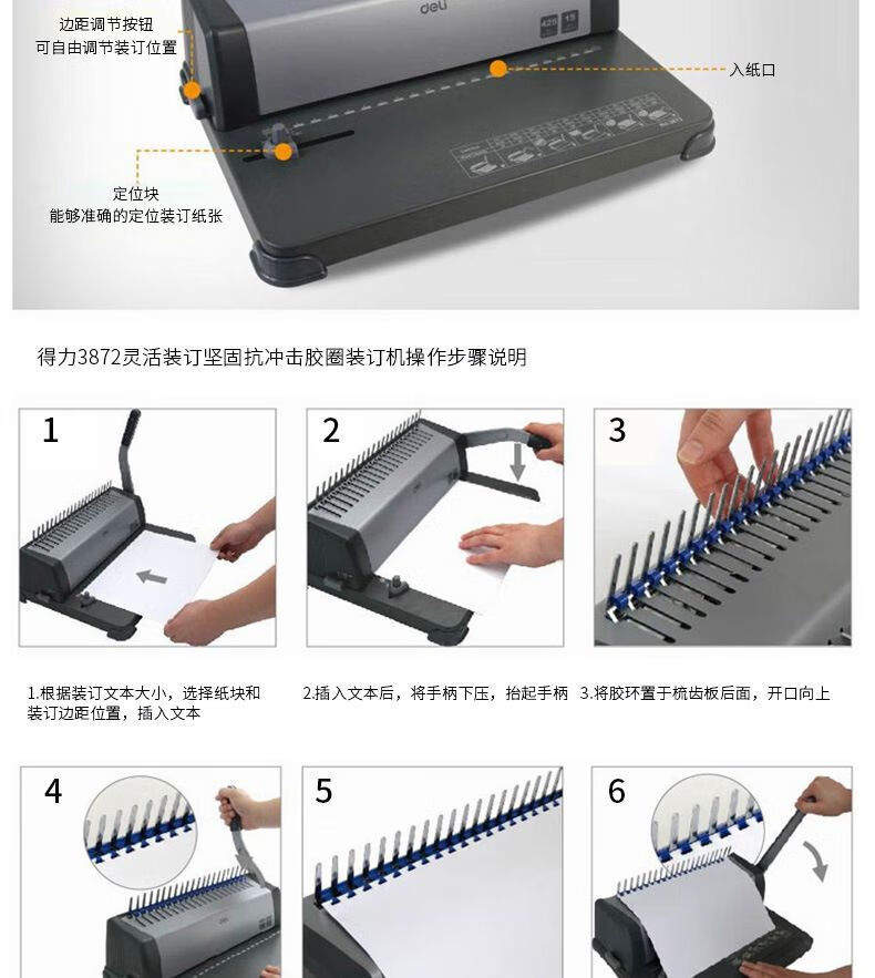 制造商型号:得力3872胶圈装订机(灰)(台)