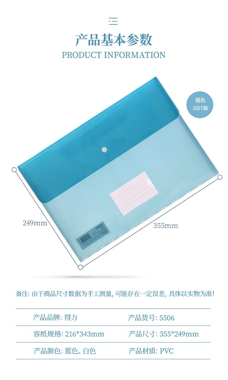 制造商型号:得力5506文件袋(混)(只)