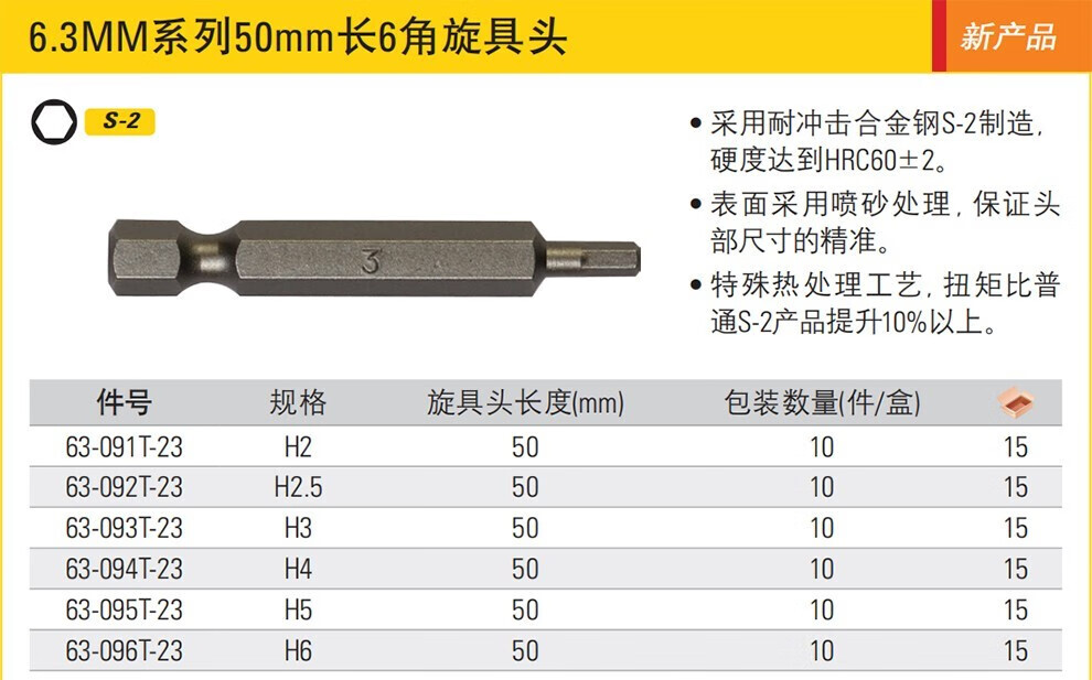 | 产品名称 | 6.3MM系列6角旋具头H6x50mm(x10) |