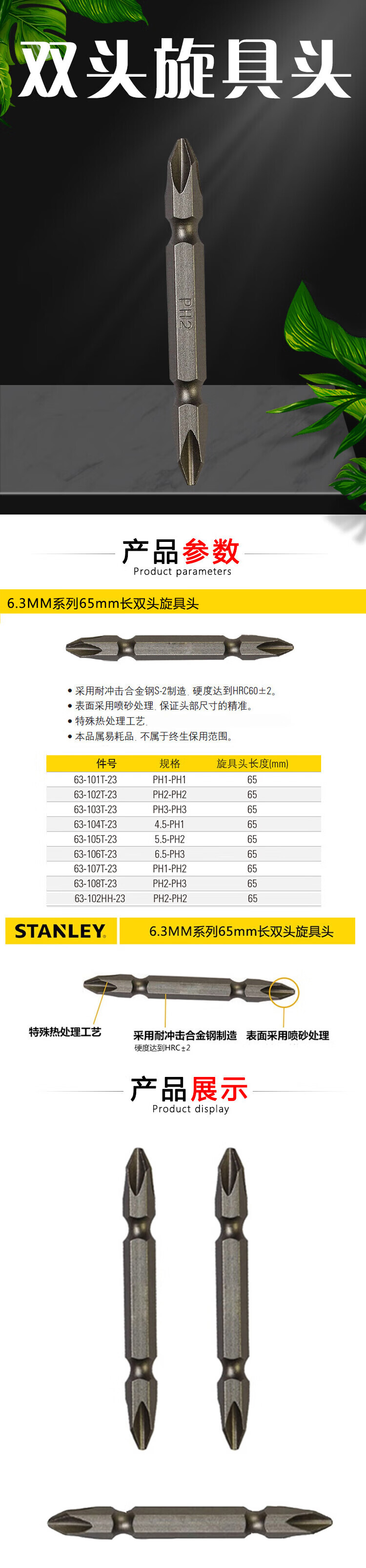| 产品名称 | 6.3MM系列双头旋具头PH1-PH1x65mm(x10) |