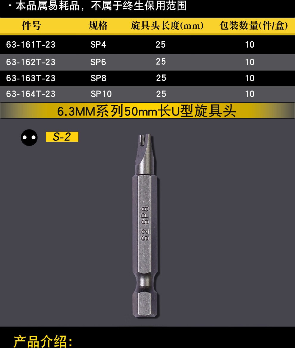 | 产品名称 | 6.3MM系列U形旋具头SP10x25mm(x10) |