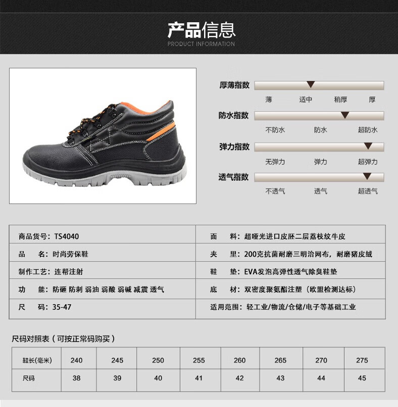| 产品名称 | 安全鞋TS4040防砸防穿刺防静电耐油耐酸碱防滑耐磨减震45 |