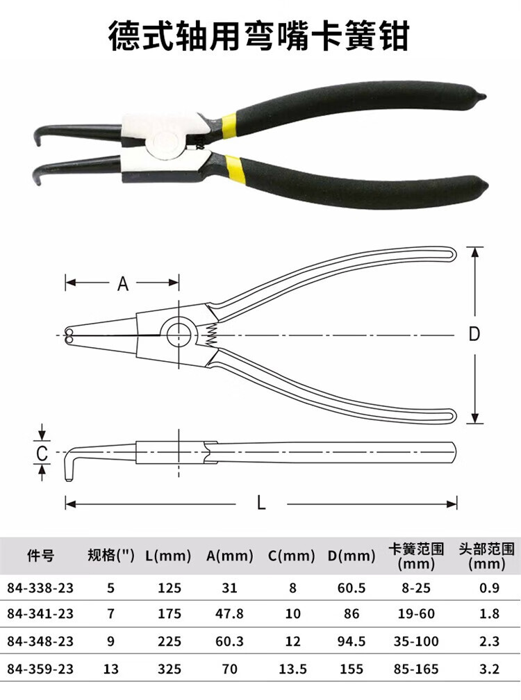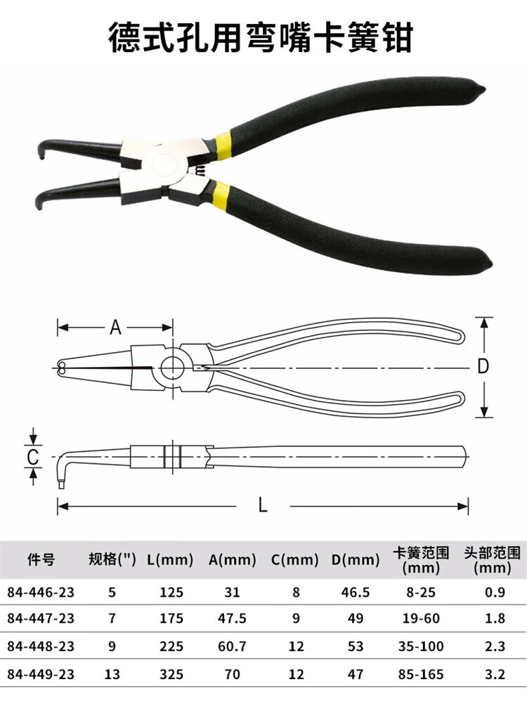 | 产品名称 | 德式孔用弯嘴卡簧钳7" |