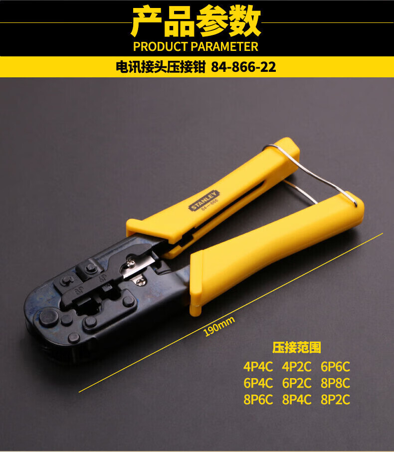 | 产品名称 | 电讯接头压接钳4P/6P/8P 190mm |