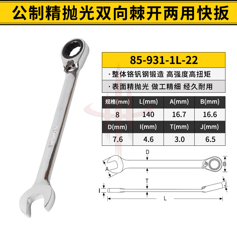 | 产品名称 | 公制精抛光双向棘开两用快扳8mm |