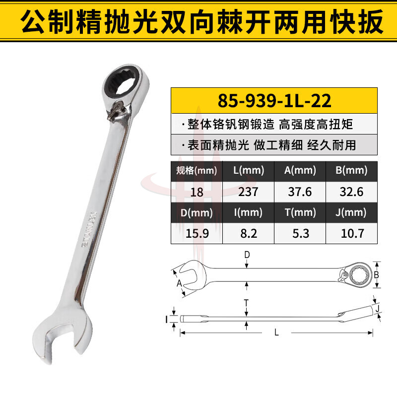 | 产品名称 | 公制精抛光双向棘开两用快扳18mm |