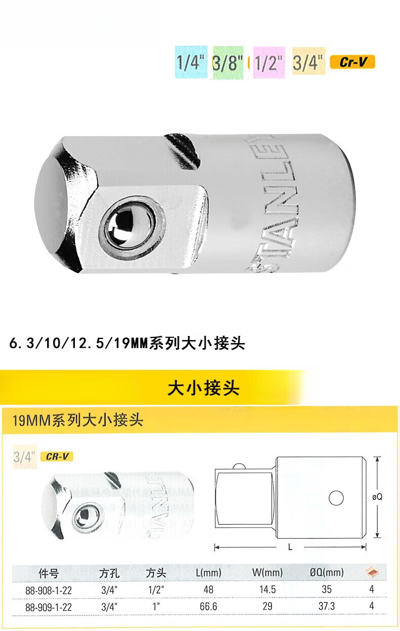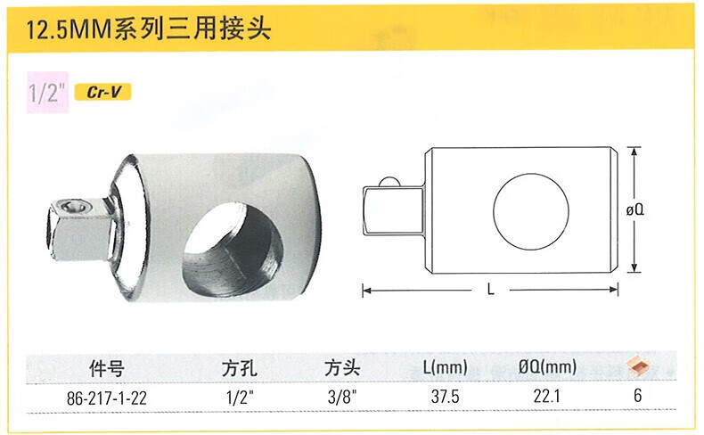 | 产品名称 | 6.3MM系列大小接头(1/4"孔3/8"头) |