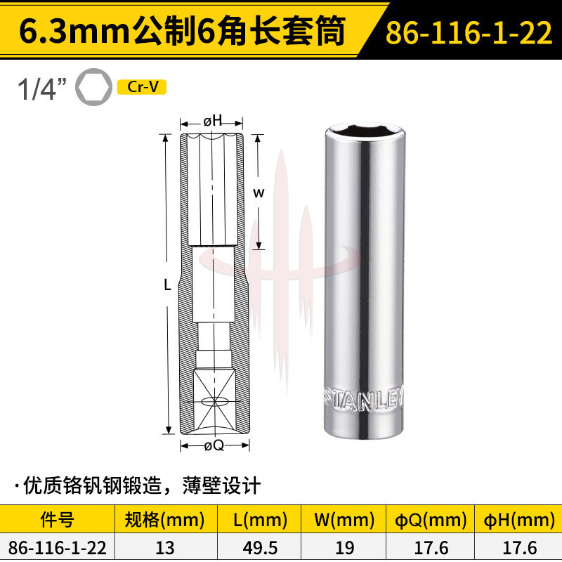 | 产品名称 | 6.3MM系列公制6角长套筒13mm |