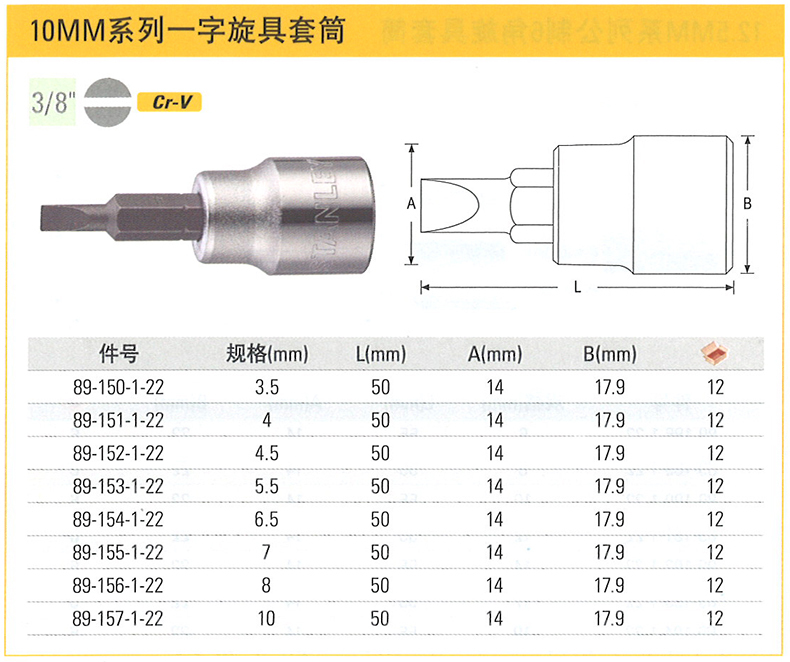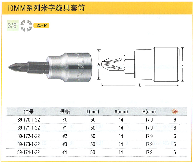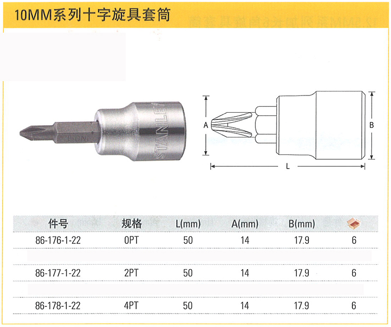 | 产品名称 | 10MM系列十字旋具套筒4PT |