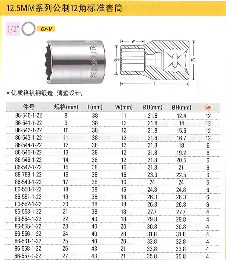 | 产品名称 | 12.5MM系列公制12角标准套筒34mm |