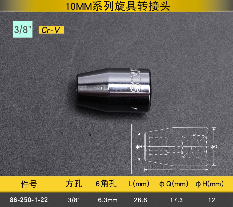 | 产品名称 | 10MM系列三用接头(3/8"孔1/4"头) |