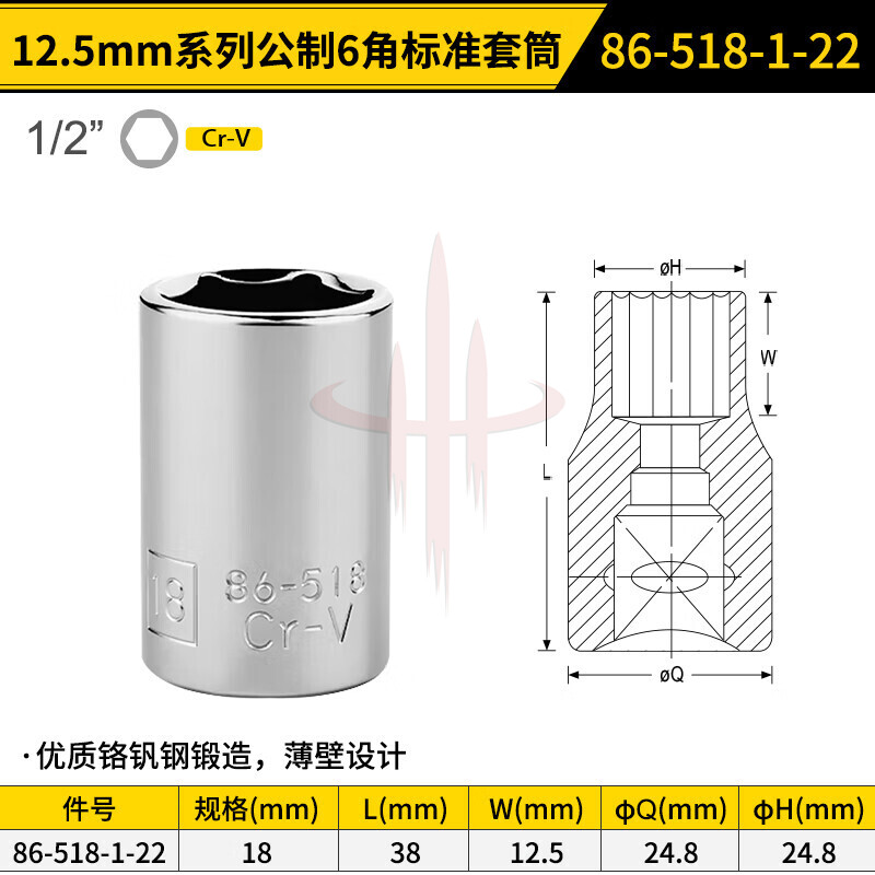 | 产品名称 | 12.5MM系列公制6角标准套筒18mm |