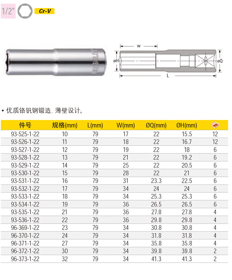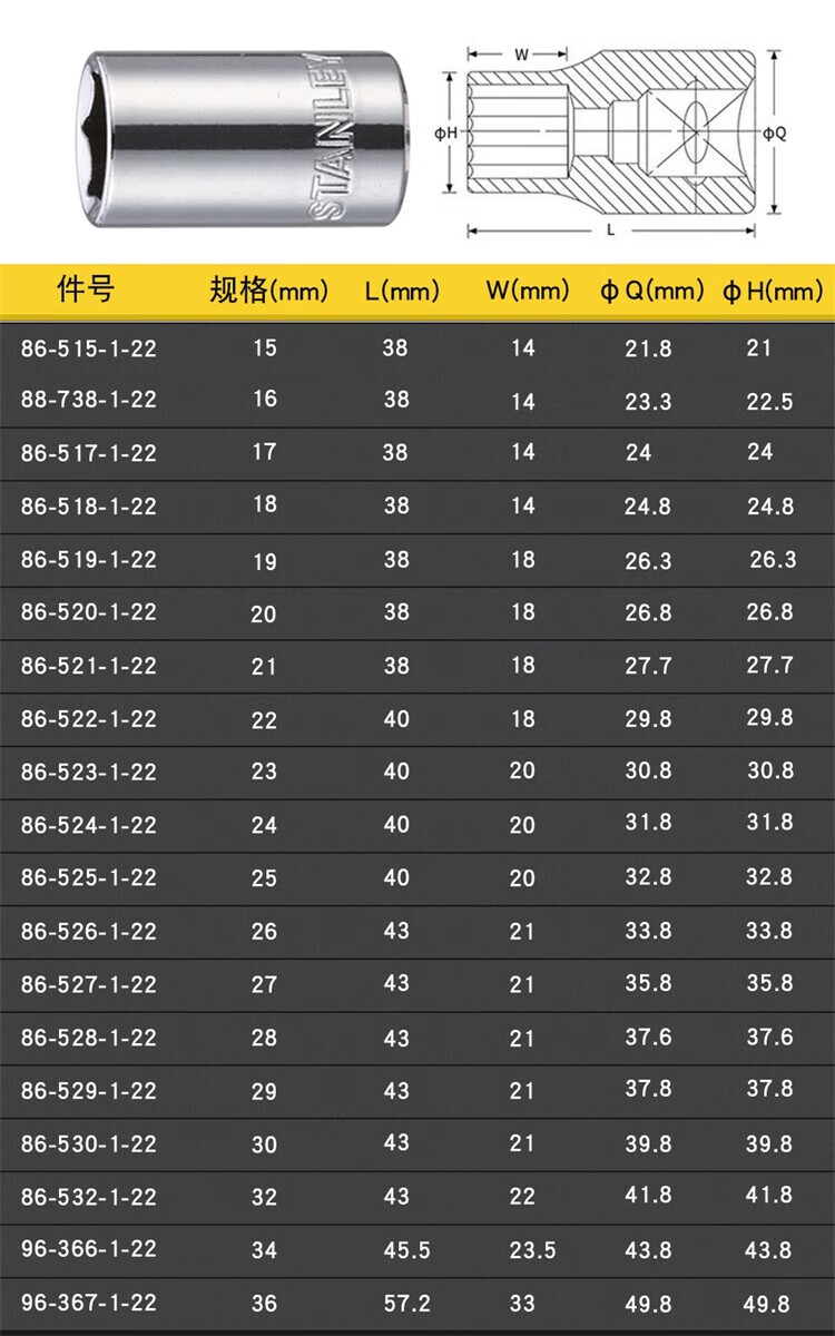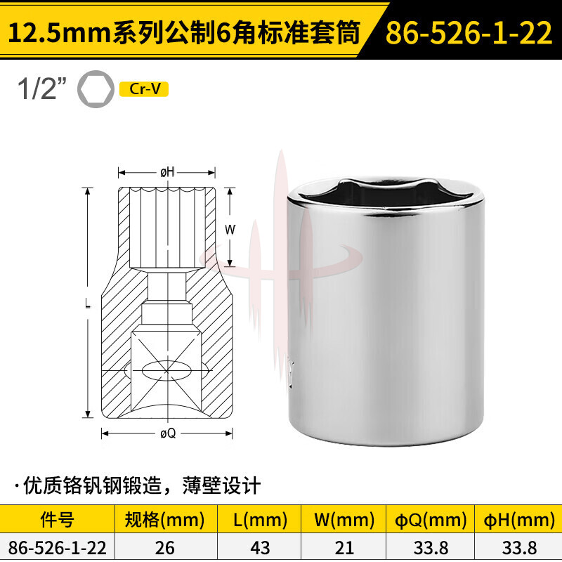 | 产品名称 | 12.5MM系列公制6角标准套筒26mm |