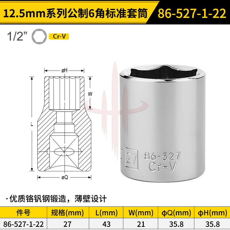 | 产品名称 | 12.5MM系列公制6角标准套筒27mm |
