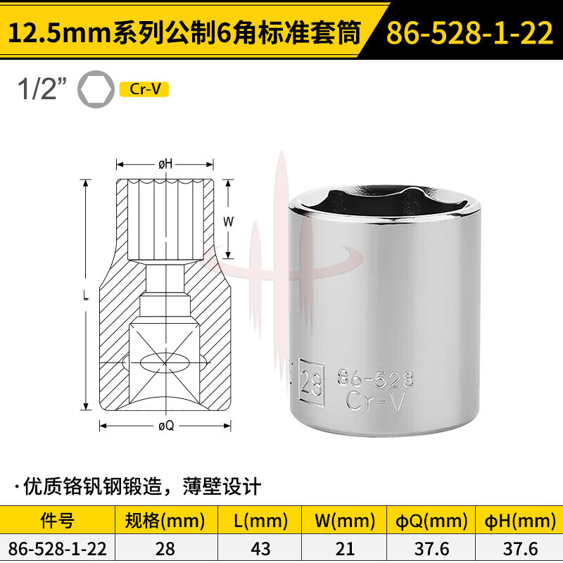 | 产品名称 | 12.5MM系列公制6角标准套筒28mm |