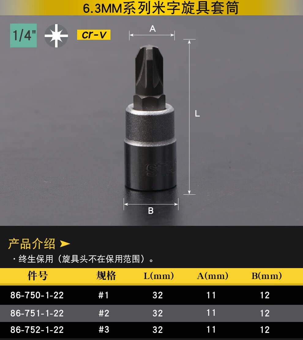 | 产品名称 | 6.3MM系列6角旋具套筒4mm |