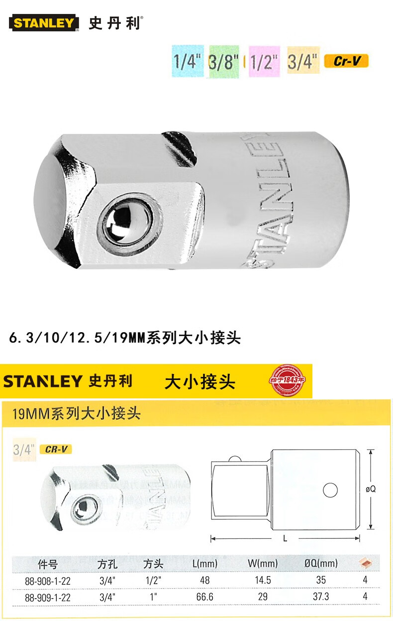 12.5MM系列大小接头(1/2"孔3/4"头)