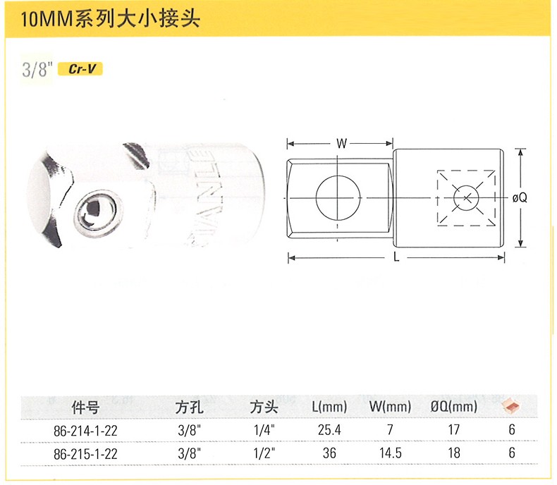 | 产品名称 | 12.5MM系列大小接头(1/2"孔3/4"头) |