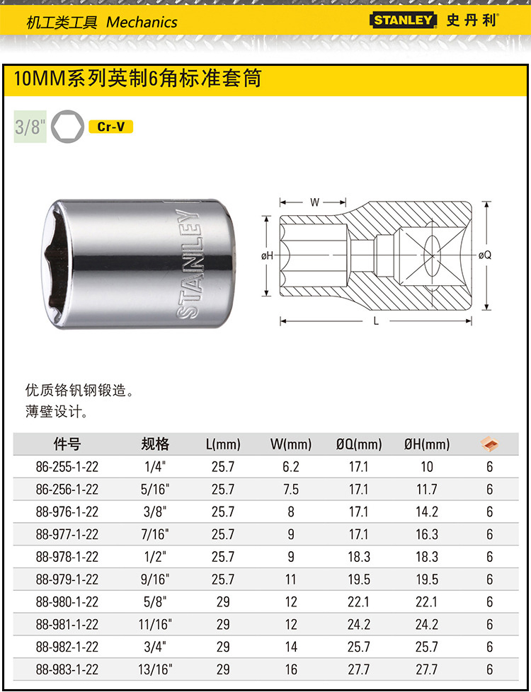 | 产品名称 | 10MM系列英制6角标准套筒11/16" |