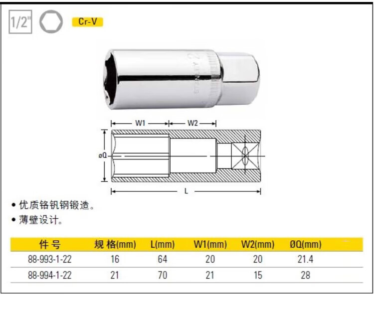 | 产品名称 | 12.5MM系列公制6角火花塞套筒16mm |