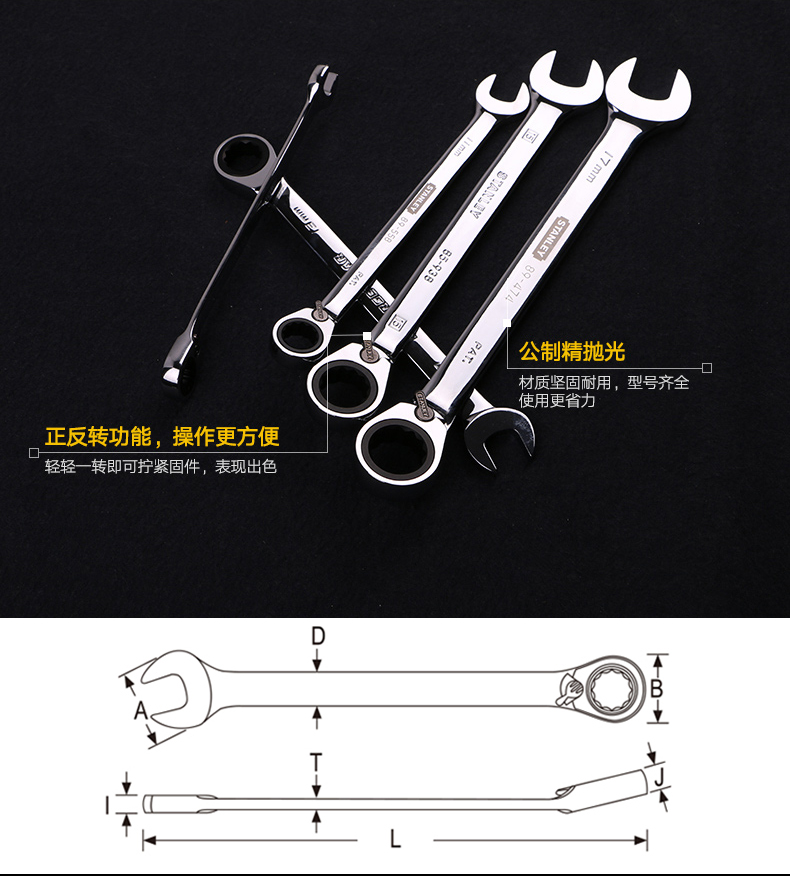 公制精抛光双向棘开两用快扳17mm