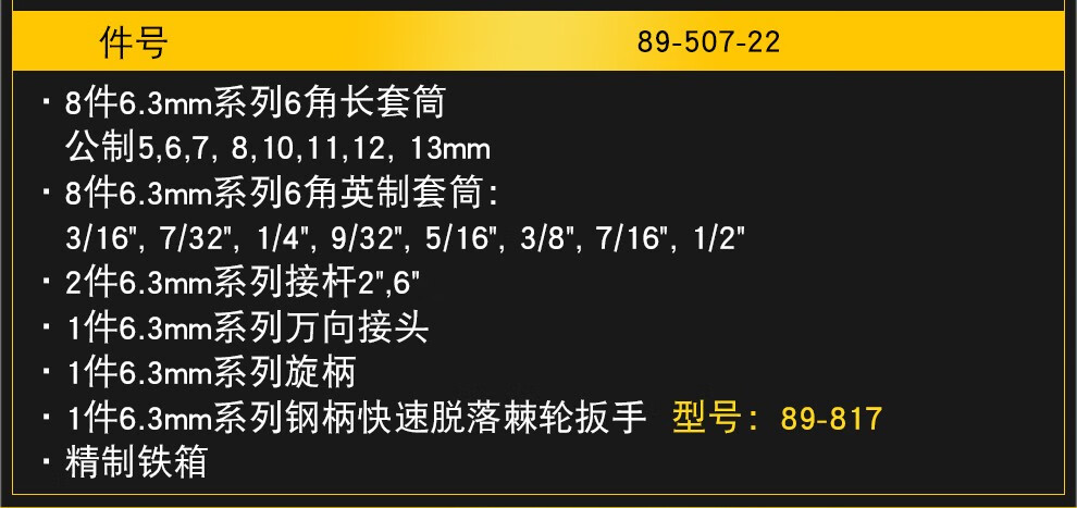 | 产品名称 | 21件套6.3MM公英制组套 |
