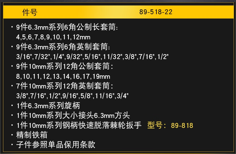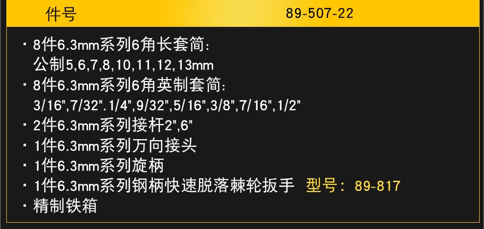 | 产品名称 | 46件套6.3MM,10MM系列公英制组套 |