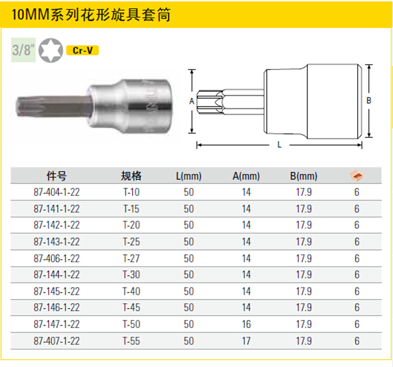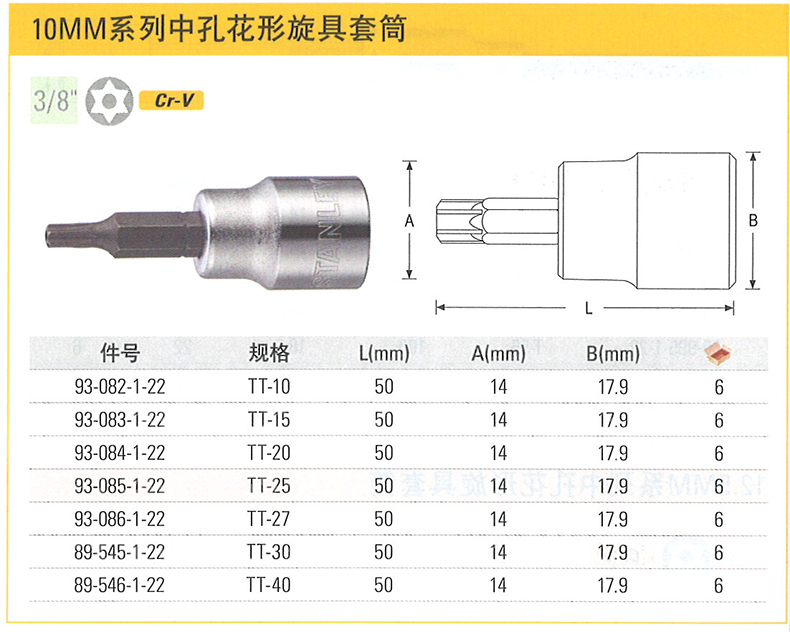 | 产品名称 | 10MM系列中孔花形旋具套筒TT40 |