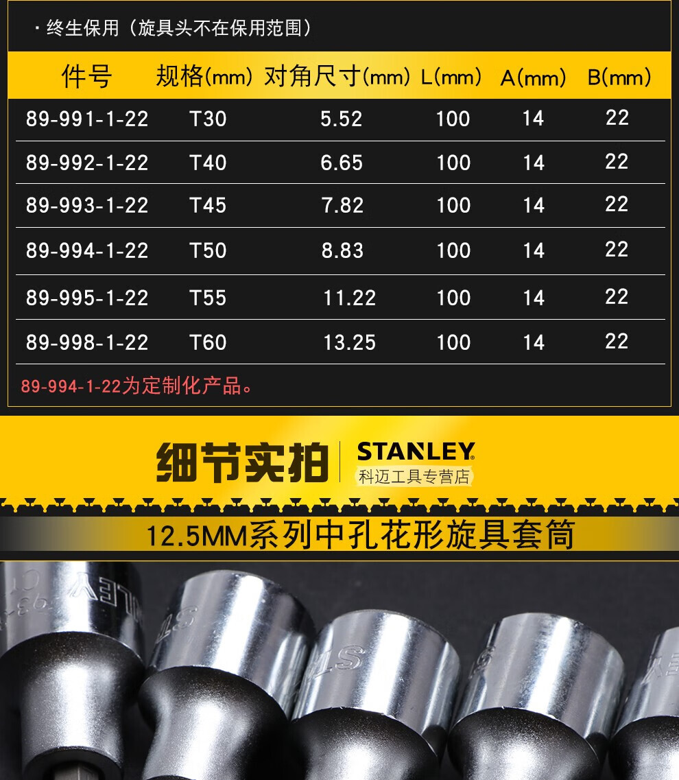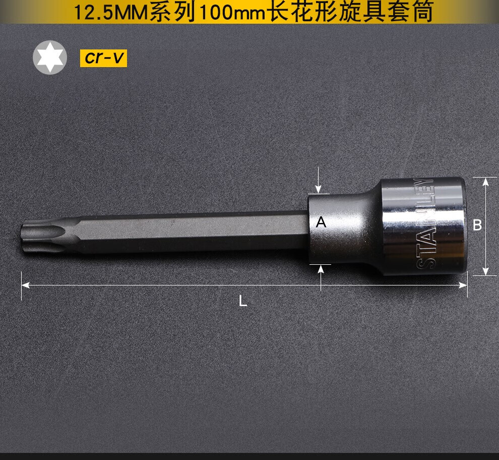 | 产品名称 | 12.5MM系列100mm长花形旋具套筒T40 |